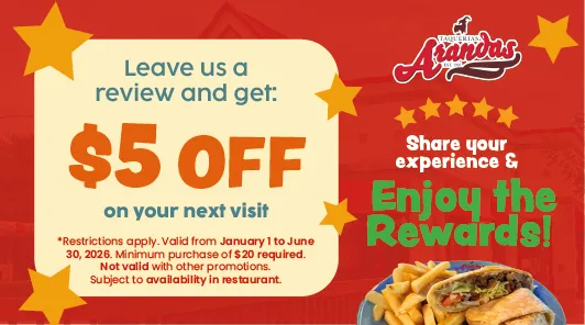 Autorizo recibir mensajes de texto de marketing de Arandas Franchises Inc al número de teléfono proporcionado. La frecuencia puede variar. Pueden aplicarse cargos por mensajes y datos. Envíe HELP para recibir ayuda o responda STOP para dejar de recibir mensajes.